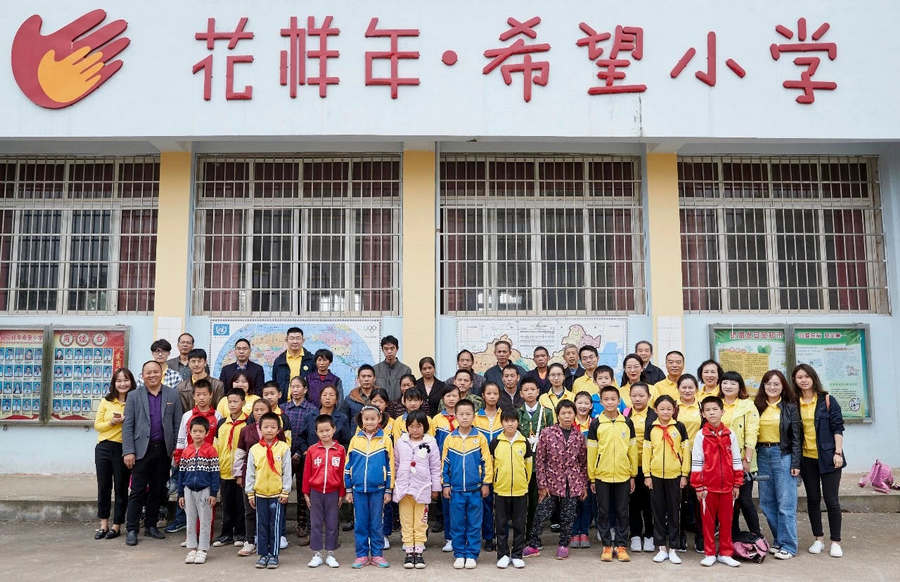 ?花樣年公益基金會志愿者和學(xué)校師生們在一起