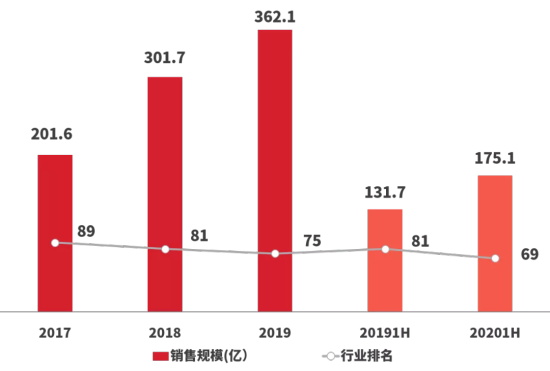 花樣年近年銷(xiāo)售規(guī)模及行業(yè)排名