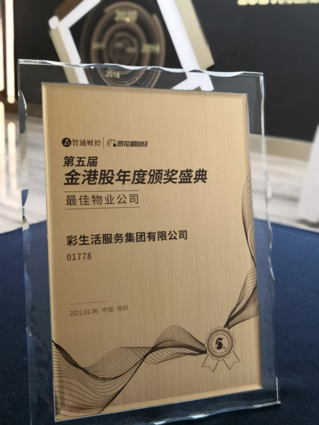 2021年第五屆“金港股”頒獎(jiǎng)盛典上,彩生活從眾多參評(píng)公司中脫穎而出,榮獲“最佳物業(yè)公司”稱號(hào)。