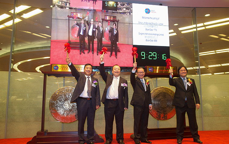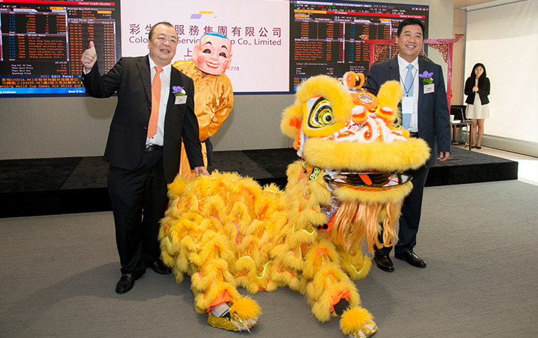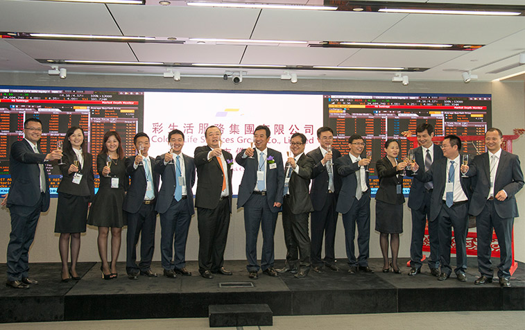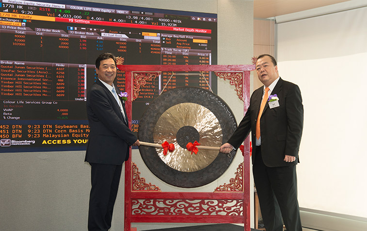 在和煦的香江晨光下,伴隨眾人的齊聲倒數(shù),2014年6月30日上午9:30,花樣年控股集團有限公司主席、彩生活服務集團主席潘軍和彩生活首席執(zhí)行官唐學斌共同敲響上市鐘聲,中國內(nèi)地社區(qū)運營第一股彩生活(01778.HK)正式登陸國際金融舞臺。